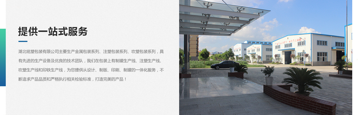湖北銘塑包裝有限公司一家集研發(fā)、生產(chǎn)、銷售于一體的較優(yōu)秀民營企業(yè),技術(shù)力量雄厚,產(chǎn)品質(zhì)量可靠。位于交通暢順,百業(yè)興旺、經(jīng)濟(jì)富裕、政策開放的孝感開發(fā)區(qū)域。我們企業(yè)的營銷戰(zhàn)略是以建筑為土壤,以產(chǎn)品為種子,以質(zhì)量為肥料,讓綠色鋪滿全球。憑借多年來的行業(yè)經(jīng)驗(yàn),公司不斷進(jìn)行創(chuàng)新和研發(fā),為市場(chǎng)提供更廣泛的產(chǎn)品應(yīng)用領(lǐng)域和更好環(huán)保節(jié)能產(chǎn)品,為國家能源環(huán)保戰(zhàn)略和可持續(xù)發(fā)展戰(zhàn)略作出應(yīng)有的貢獻(xiàn)。 湖北銘塑包裝有限公司主要生產(chǎn)金屬包裝系列、注塑包裝系列、吹塑包裝系列,具有先進(jìn)的生產(chǎn)設(shè)備及優(yōu)良的技術(shù)團(tuán)隊(duì),我們?cè)诎b上有制罐生產(chǎn)線、注塑生產(chǎn)線、吹塑生產(chǎn)線和印鐵生產(chǎn)線,為您提供從設(shè)計(jì)、制版、印刷、制罐的一體化服務(wù),不斷追求產(chǎn)品品質(zhì)和嚴(yán)格執(zhí)行相關(guān)檢驗(yàn)標(biāo)準(zhǔn),打造更好的產(chǎn)品!